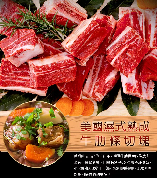 【買新鮮】美國濕式熟成牛肋條切塊500g±5%-包是最近我買過算cp值蠻高的一個商品,下面是賣場提供的商品簡介: